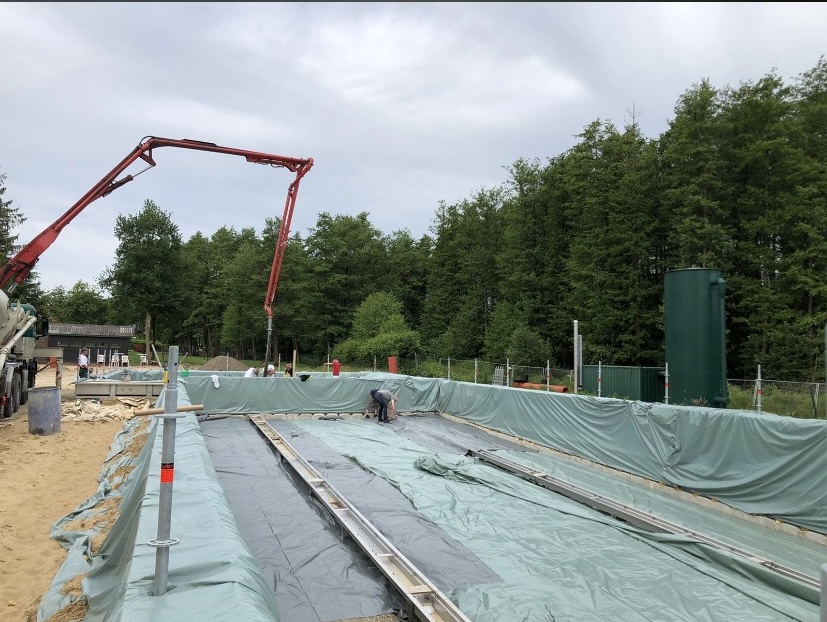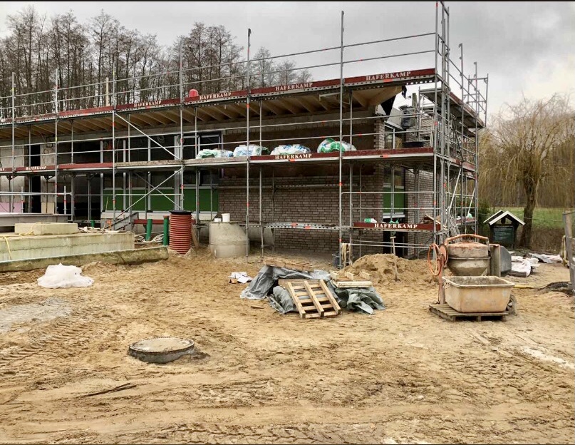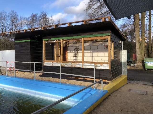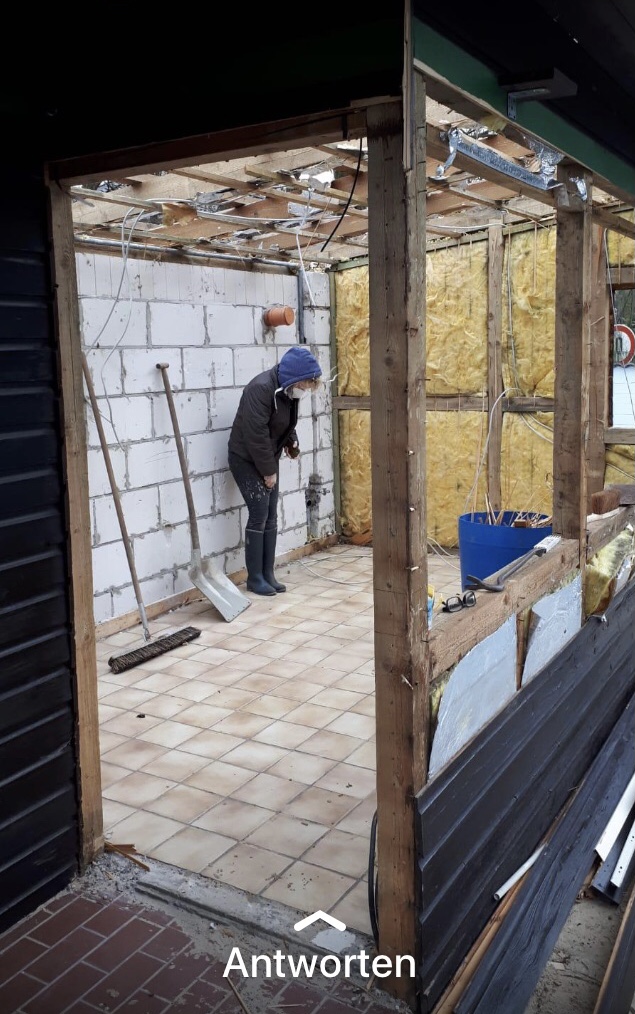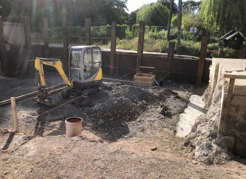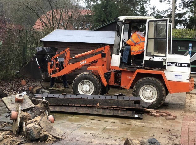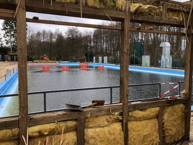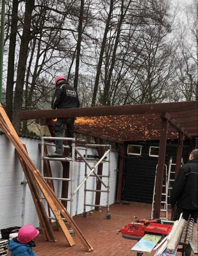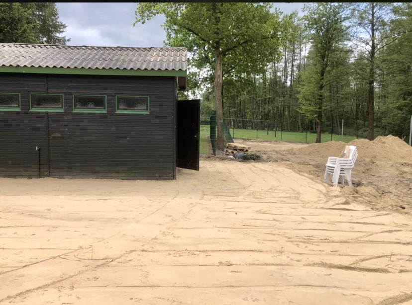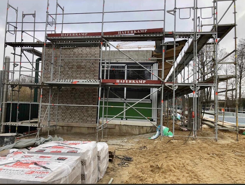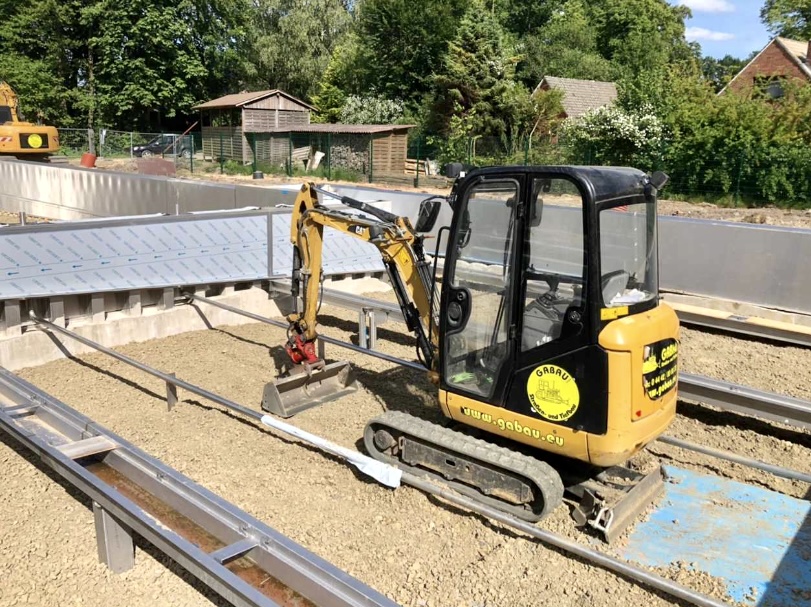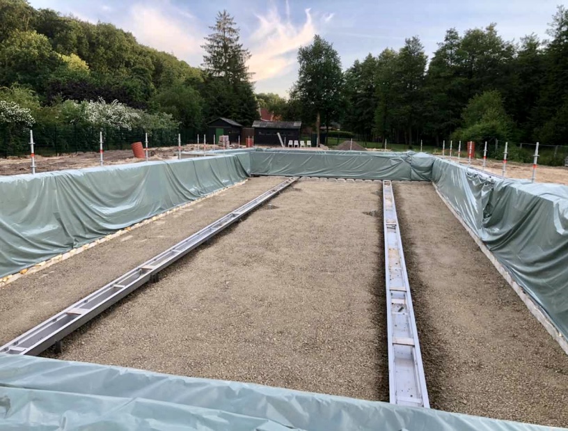 Es geht voran, die ersten Pflasterarbeiten wurden von Mitgliedern des Fördervereins geleistet. Der Aufbau nimmt auch langsam Formen an: