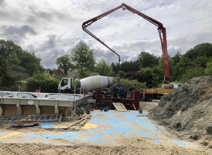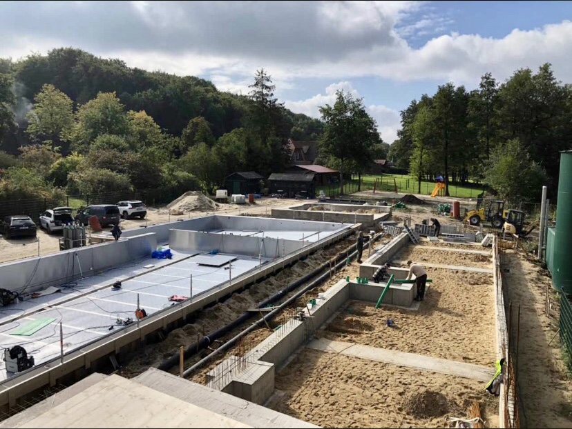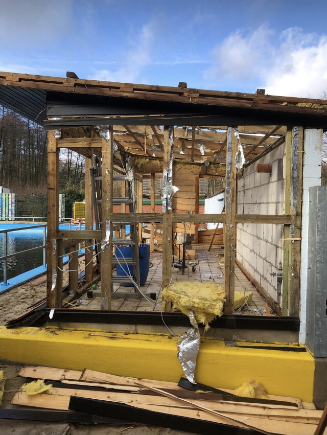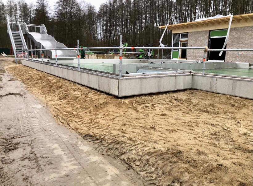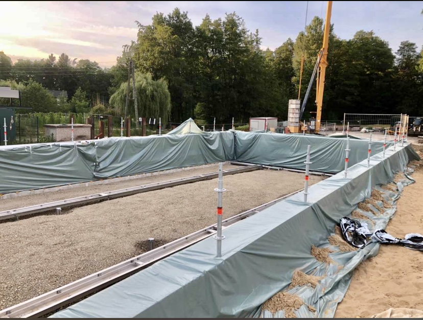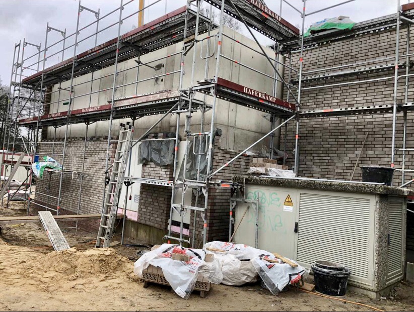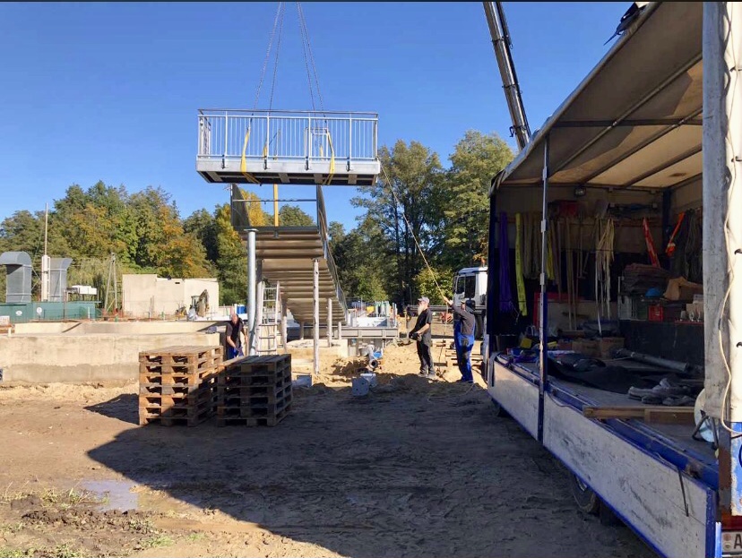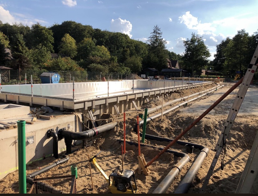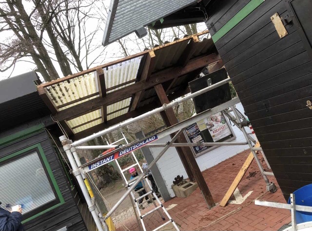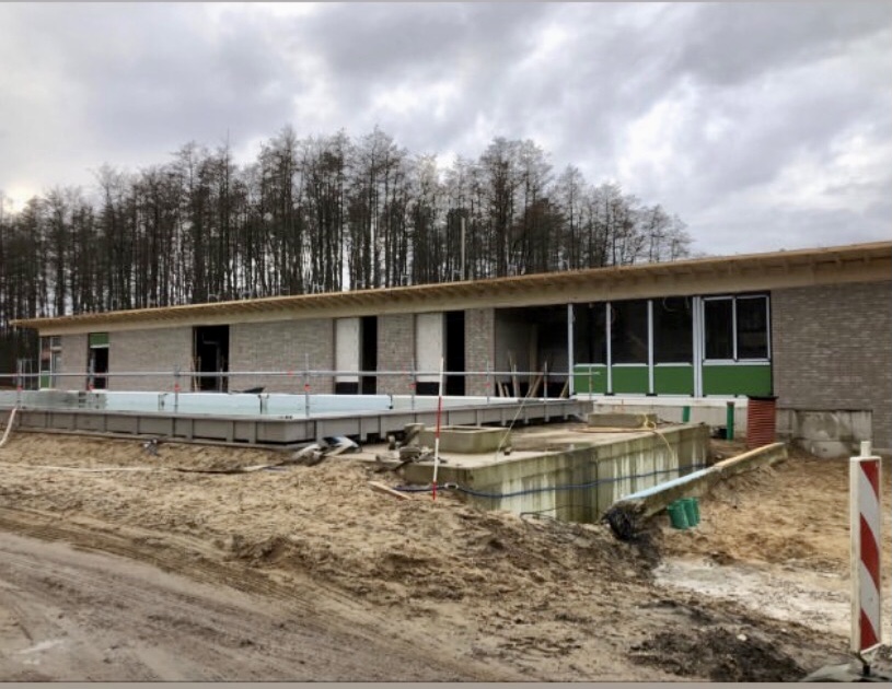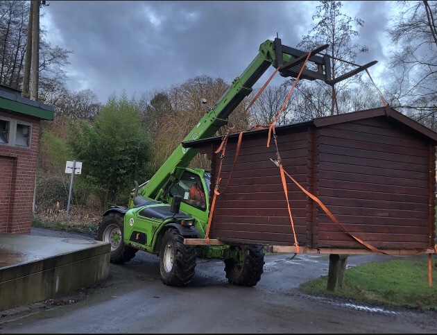 Es geht voran, die ersten Pflasterarbeiten wurden von Mitgliedern des Fördervereins geleistet. Der Aufbau nimmt auch langsam Formen an:
