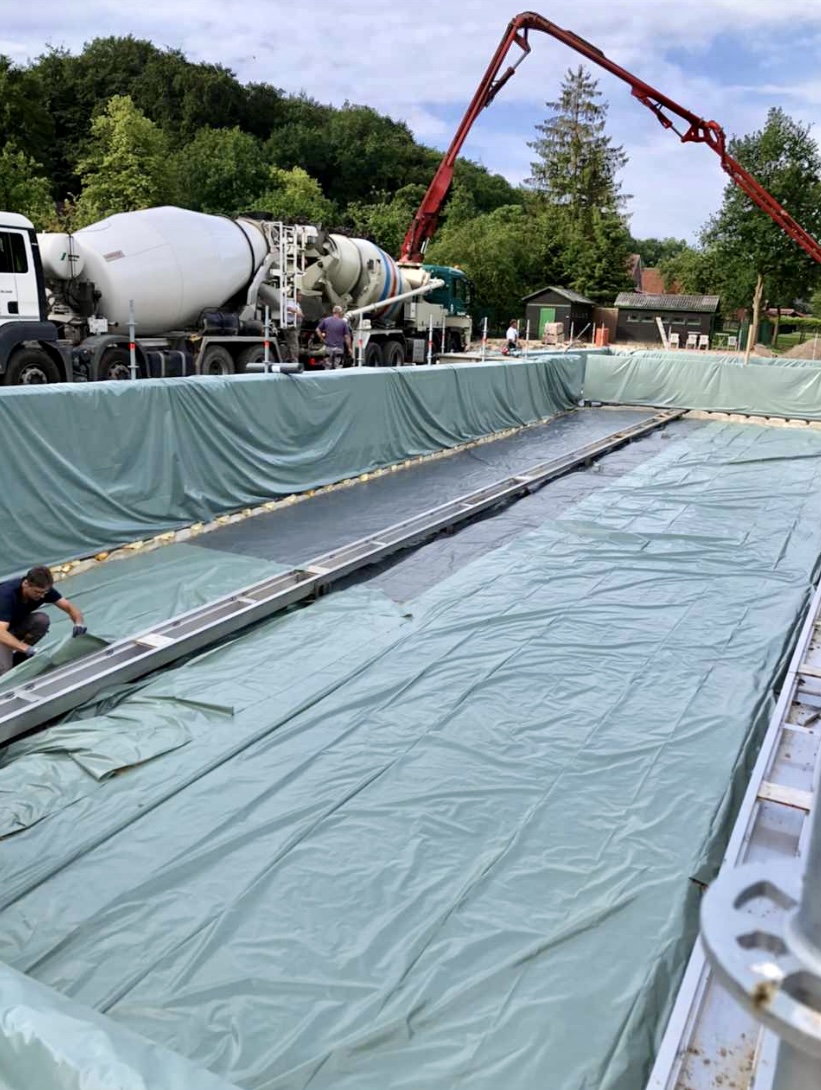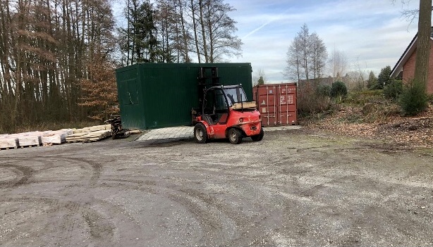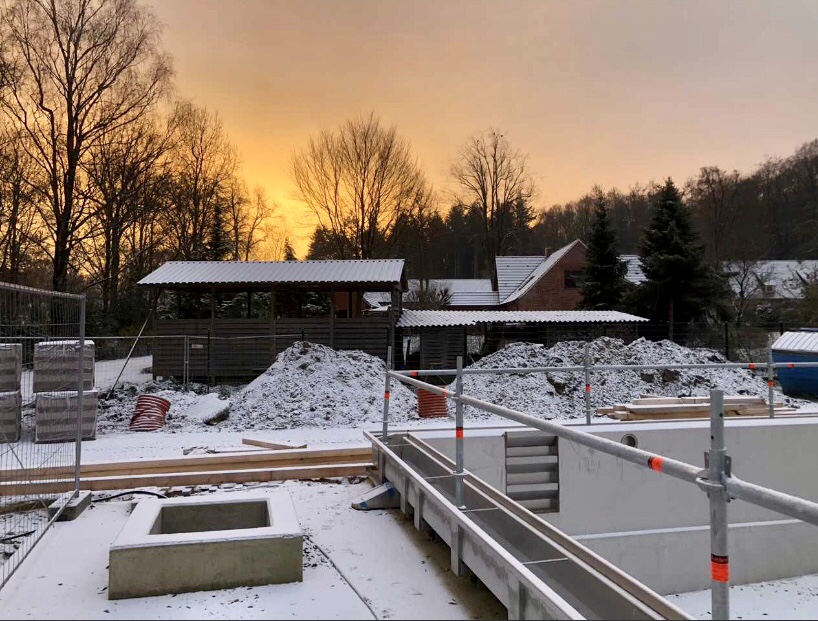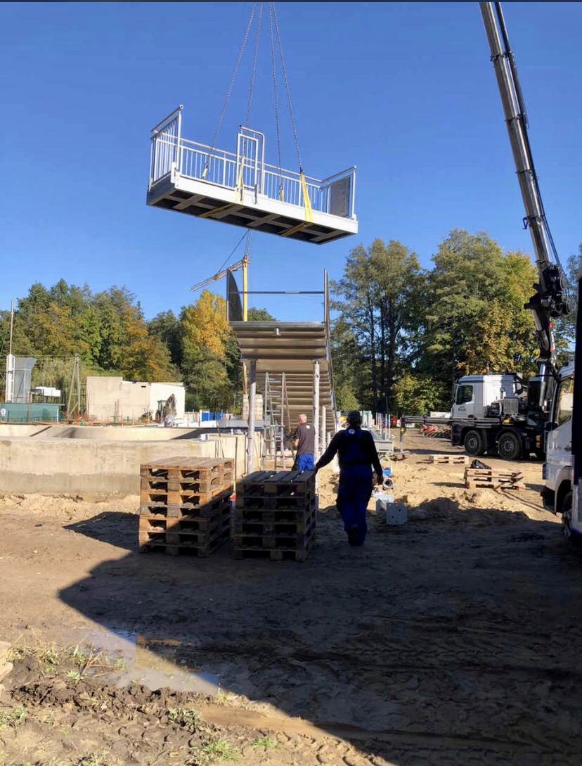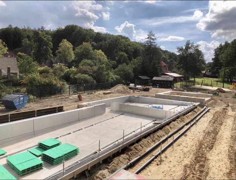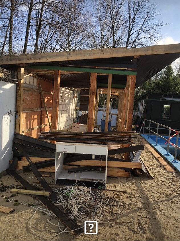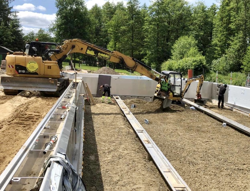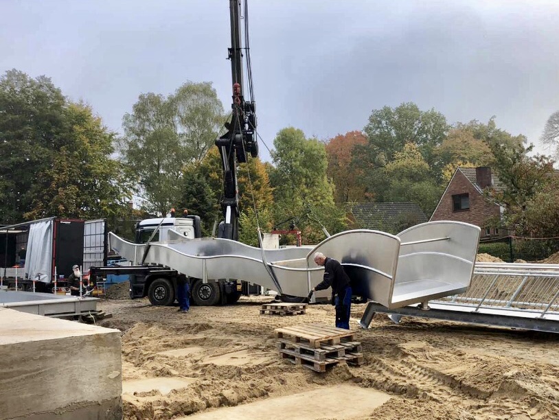 Es geht voran, die ersten Pflasterarbeiten wurden von Mitgliedern des Fördervereins geleistet. Der Aufbau nimmt auch langsam Formen an: