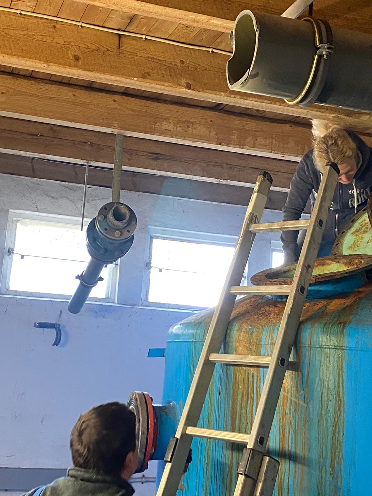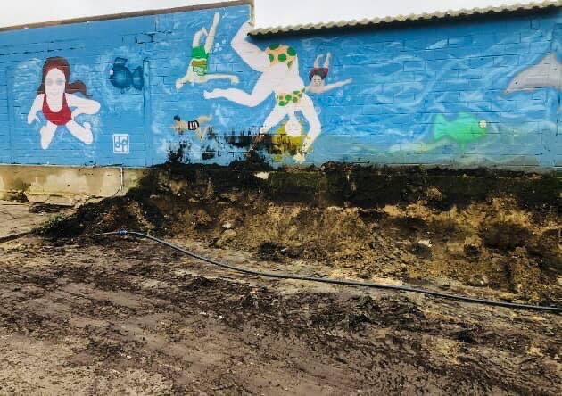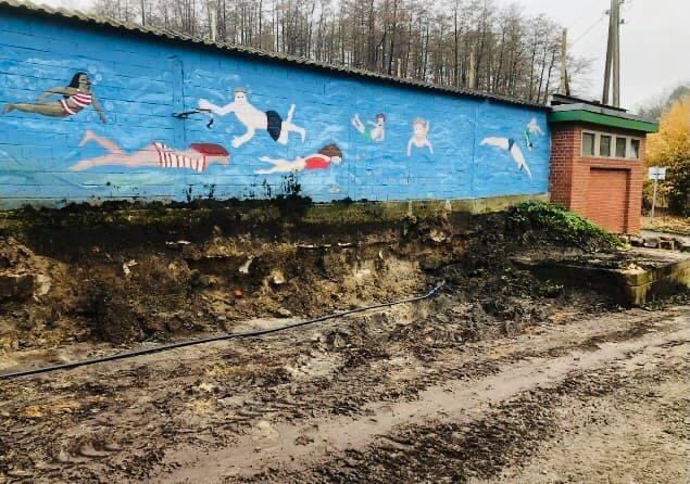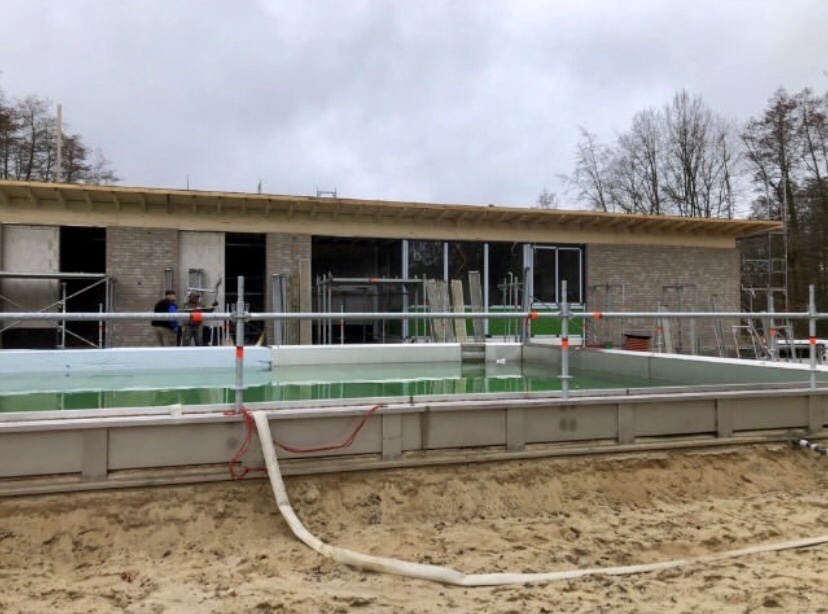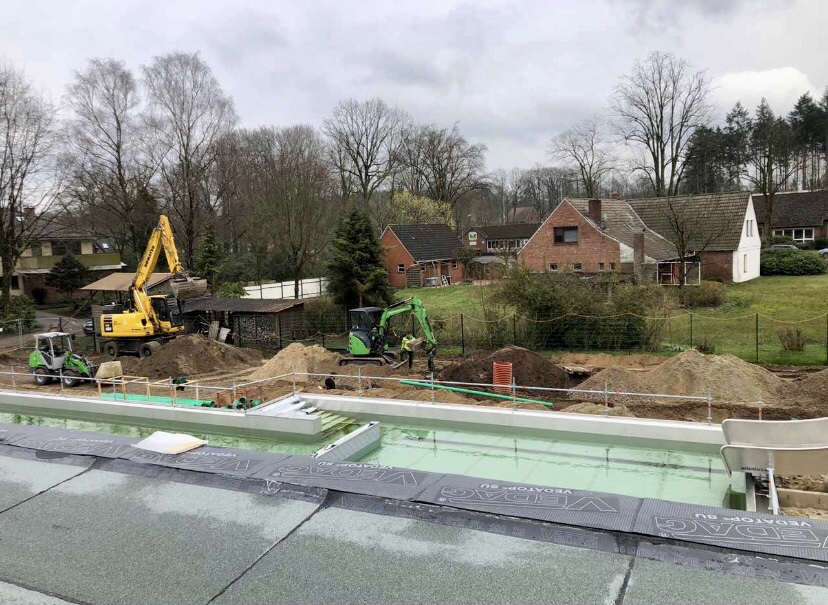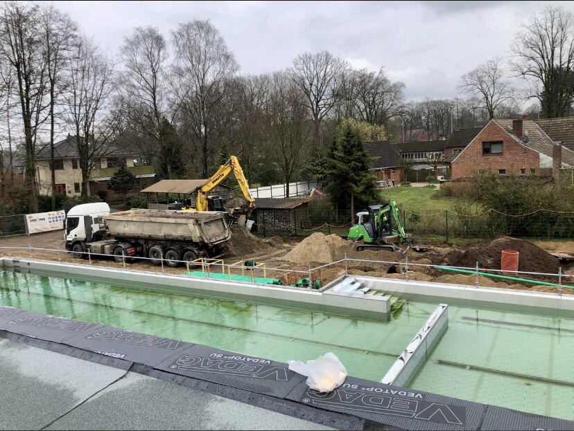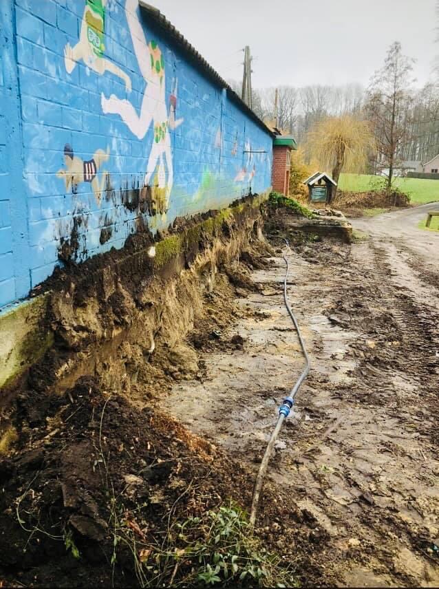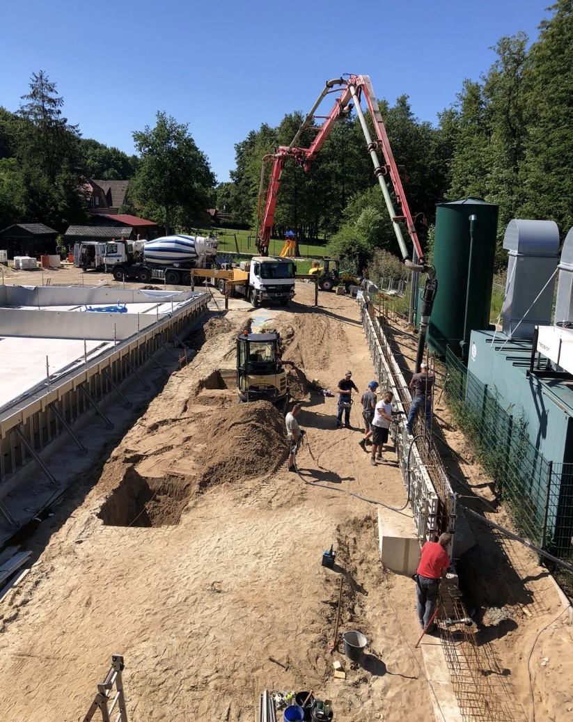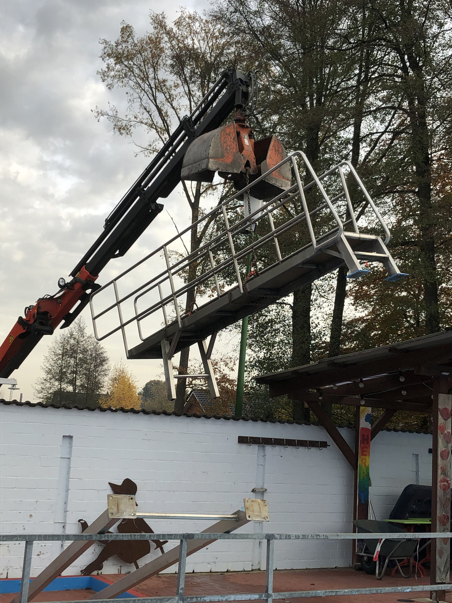 Es geht voran, die ersten Pflasterarbeiten wurden von Mitgliedern des Fördervereins geleistet. Der Aufbau nimmt auch langsam Formen an: